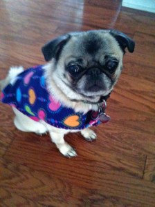 Today’s post is in response to that. For in spite of the fact that I think some of my other posts are more useful the most popular post of all is titled Bee-utiful Lucy. It has a picture of Lucy, my pug, dressed in her bee costume. The search words that bring the most people to my blog are pug, dressed up pug, silly pug. Bee-utiful Lucy is especially popular in the U.K. So for all my pug loving friends out there in the States and across the pond, this one’s for you. 🙂